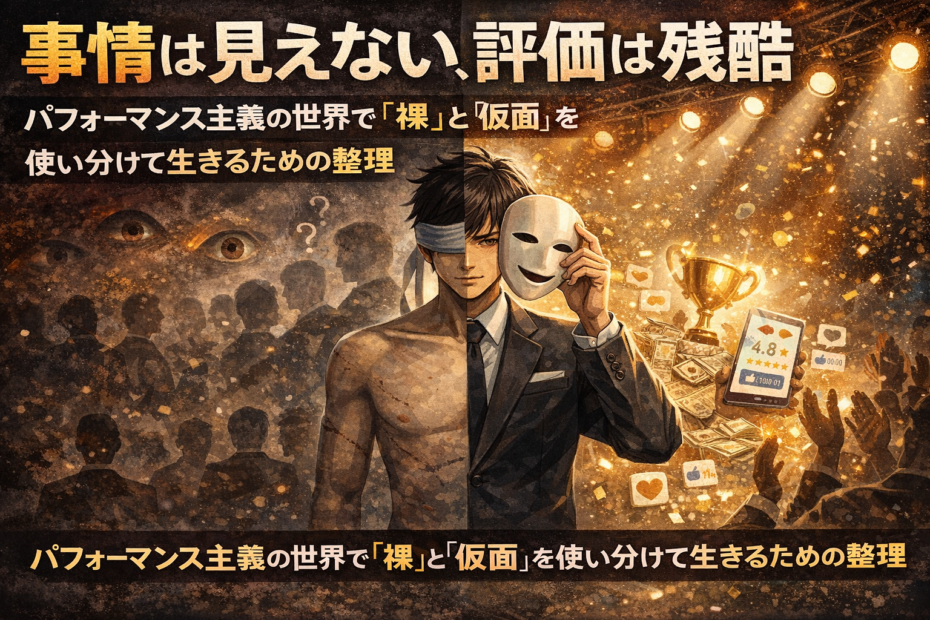どうも、太陽です。 世の中には、どうしても避けられない現実がある。 どれだけ複雑な事情や背景… 続きを読む »事情は見えない、評価は残酷――パフォーマンス主義の世界で「裸」と「仮面」を使い分けて生きるための整理
