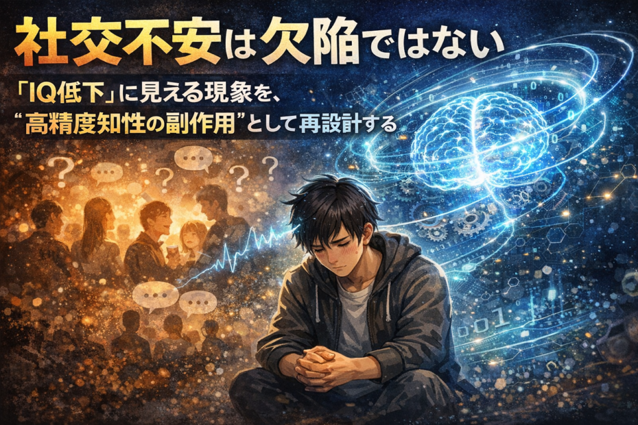 どうも、太陽です。 自分の知的パフォーマンスについて考えるとき、僕は「もともとのIQはおそら… 続きを読む »社交不安は欠陥ではない――「IQ低下」に見える現象を、“高精度知性の副作用”として再設計する